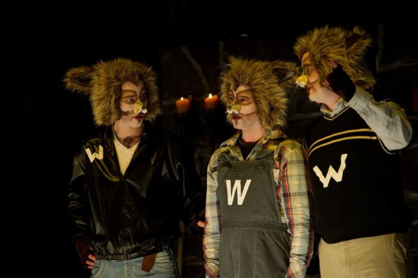 Baltimor de wolf was de schrik van het hele bos, maar nu al een tijd niet meer. Want het lukte hem niet om drie biggetjes te vangen. Iedereen lacht nu bij het horen van zijn naam en dat is tot vandaag zijn grootste nachtmerrie. Gelukkig heeft hij drie zonen. Zij zijn achttien geworden en kunnen zijn naam redden. De opdracht aan hen is om de biggen op Baltimor zijn bordje te krijgen. Dat lijkt heel simpel. Maar wat als er dan liefde in het spel komt? Of wat als je moet toegeven dat je helemaal niet zo’n stoere wolf bent? Toneelgroep ‘De Hofnarren’ speelt een vrolijk verhaal in een dierenbos;met spanning, muziek en veel plezier. ..en met liefde natuurlijk.
