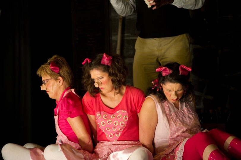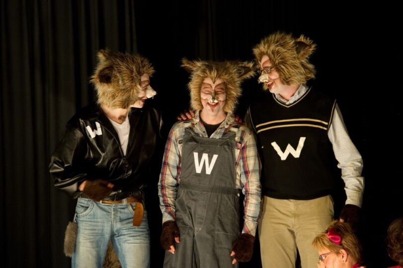 Een bewerking van de musical de drie biggetjes van Studio 100. De liedjes werden grotendeels vervangen door teksten en de verhaallijn iets aangepast. Een prachtig schouwspel met muziek, zang en dans. De grime kon zich eens heerlijk uitleven en de spelers zetten hun beste beentje voor in de choreografie.